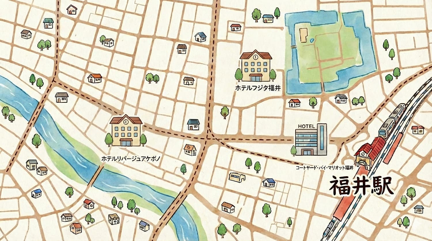 福井城址のすぐそばにあり、駅周辺の観光に便利です。