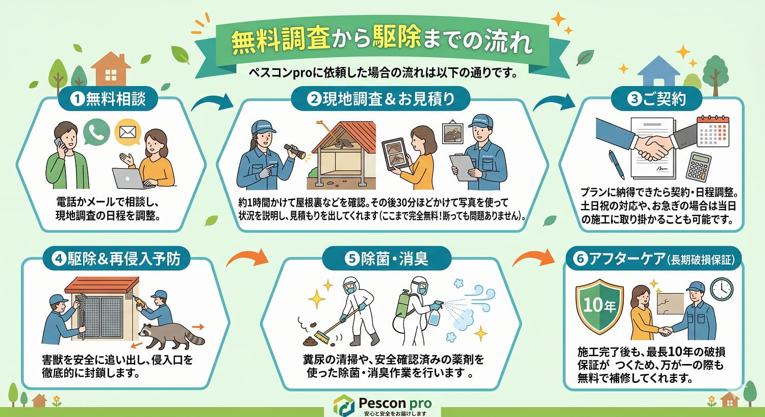ペスコンproに依頼した場合の流れは以下の通りです。